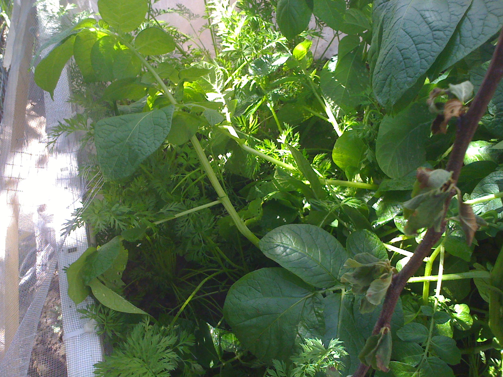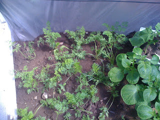 Estas son las zanahorias en el invernadero 2 junto a las papas van creciendo