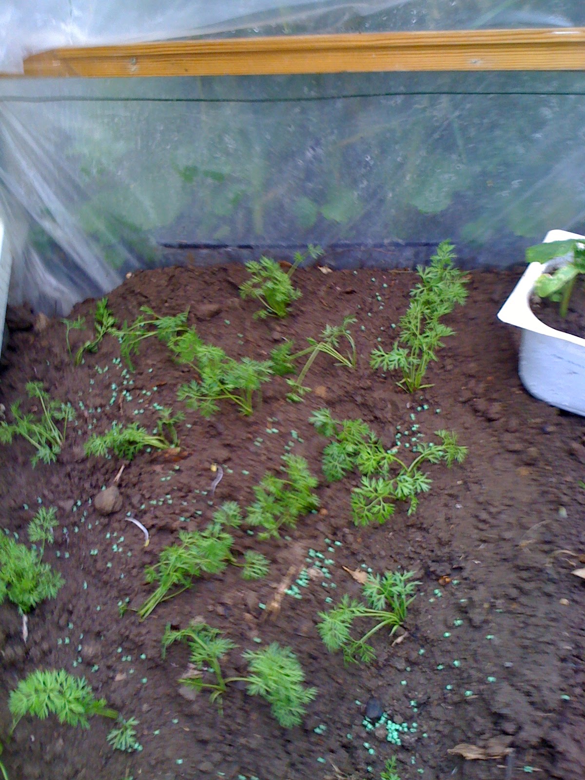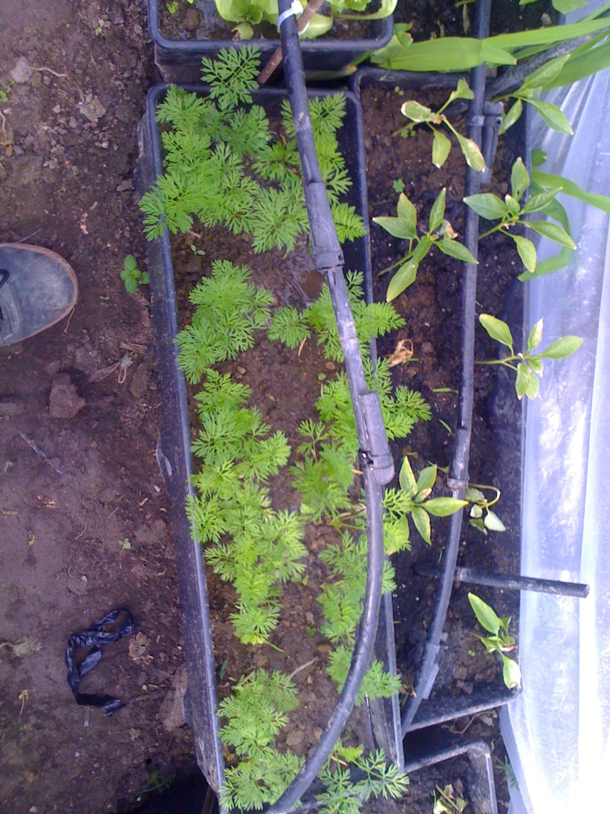 hoy domingo dia 5 de mayo de 2013 hemos vuelto a plantar zanahorias en el mismo sitio del invernadero haber que tal salen