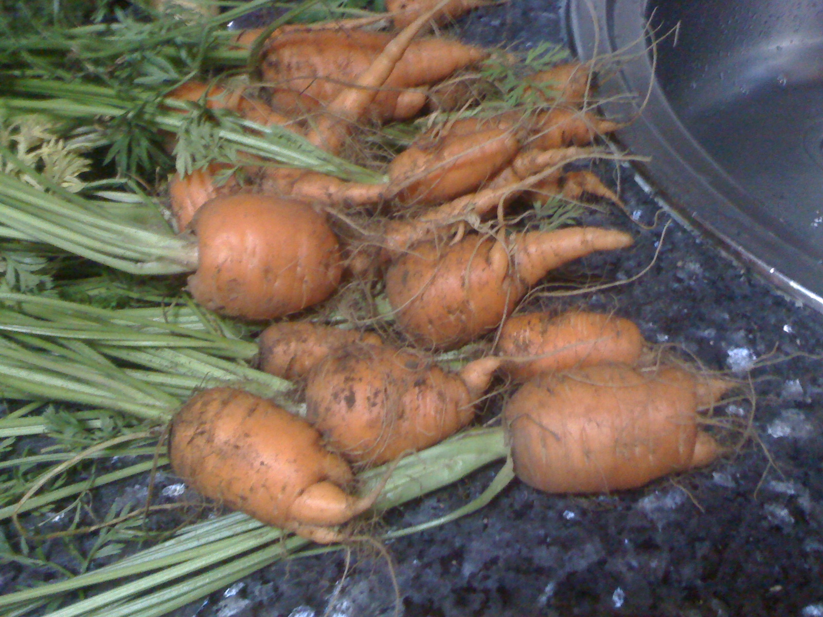 Zanahorias pequeñas y la punta cambada pues no pudieron crecer