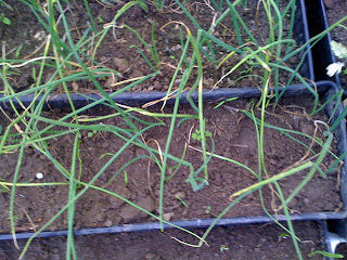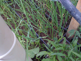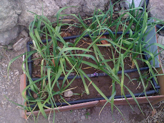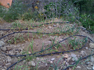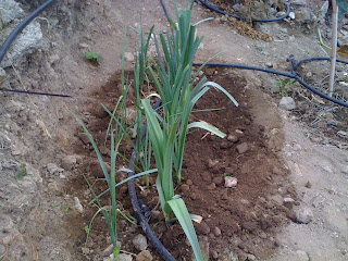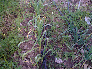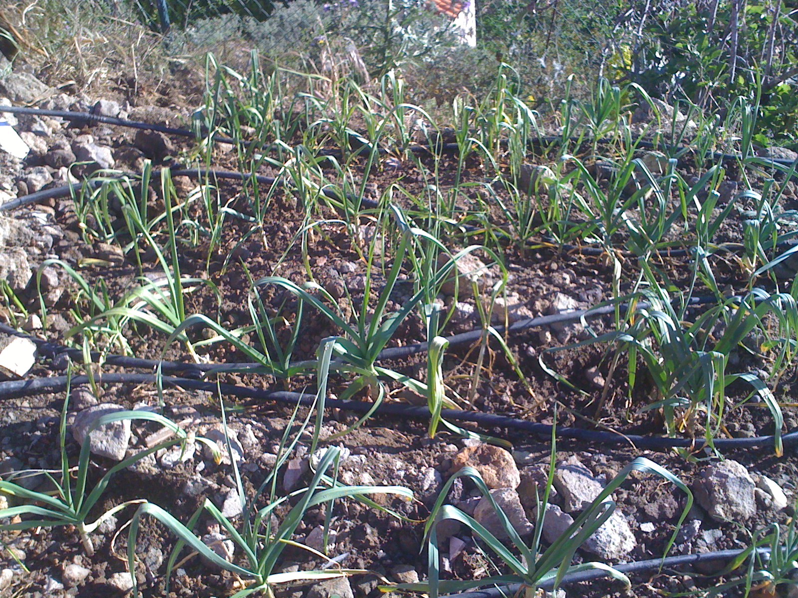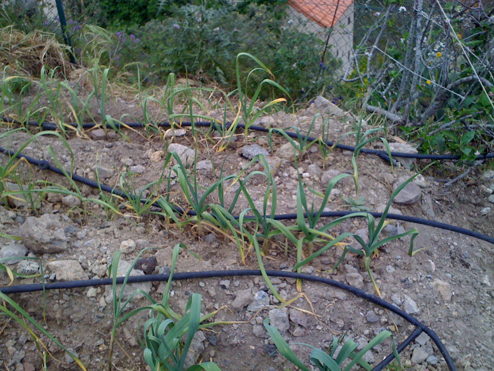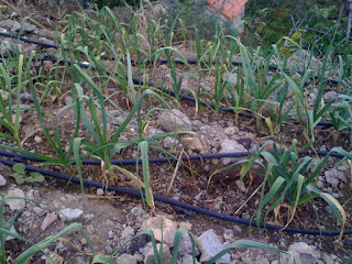 estos ajos estan plantados en el terreno delante de la casa y van muy bien