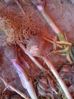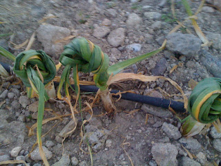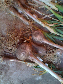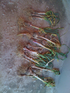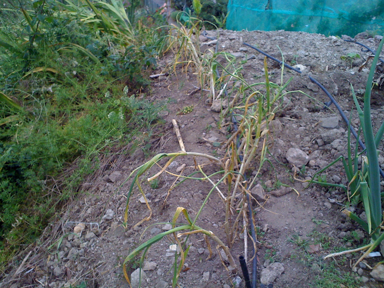 hemos recojido la mitad de los ajos y estan asi falta la otra mitad que no la quise recojer todavia