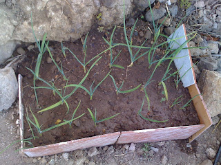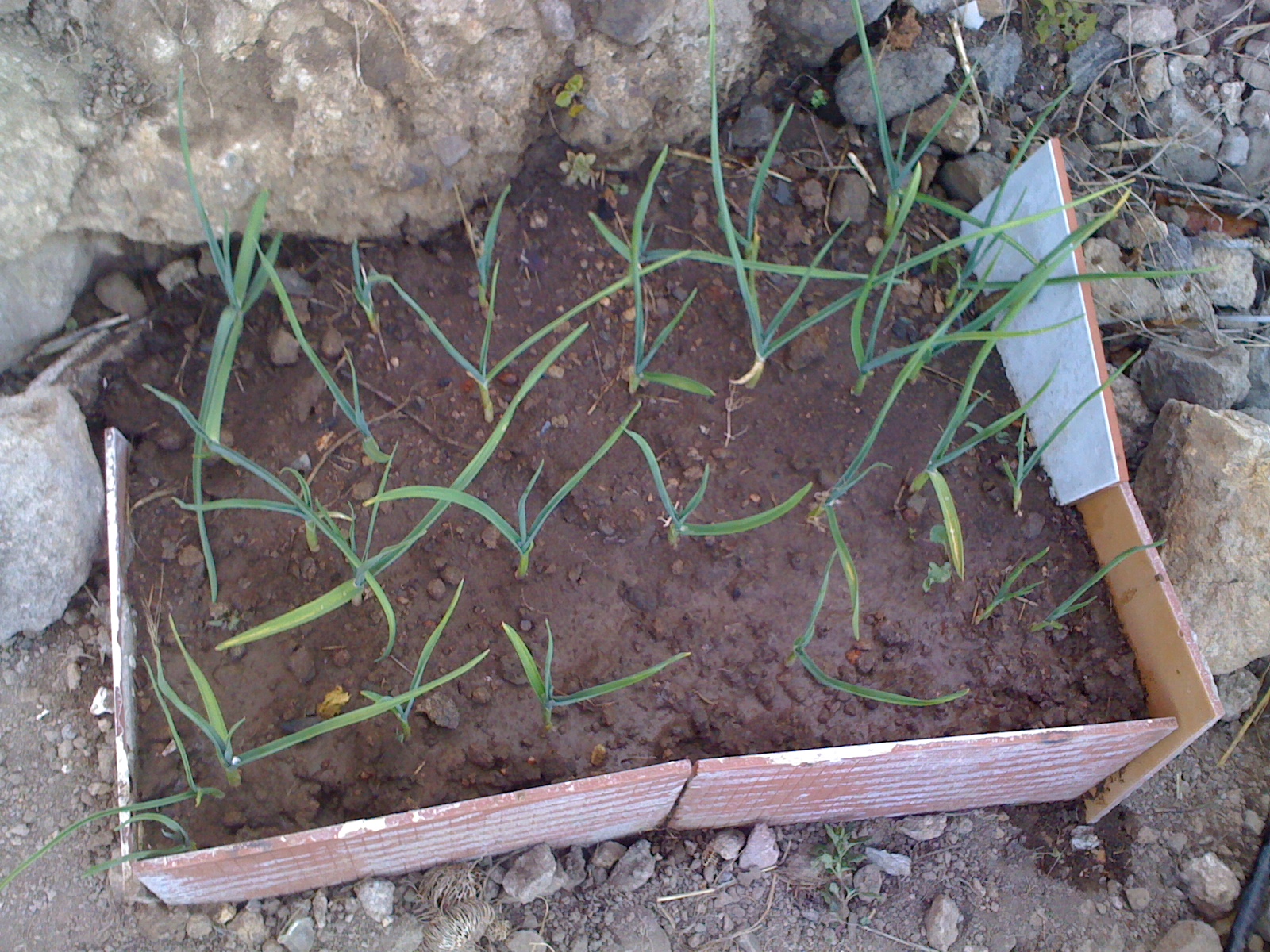 Estos ajos estan plantados en el terreno detras de la casa terreno 2