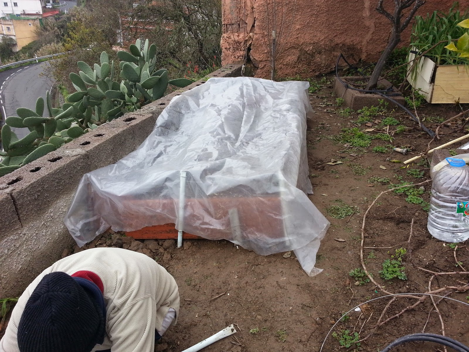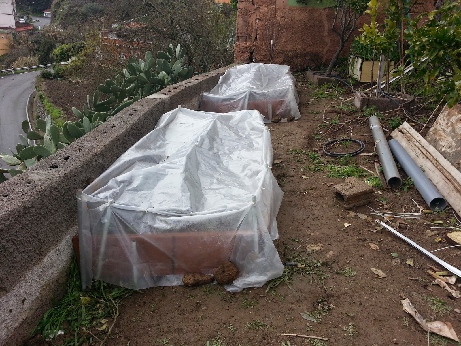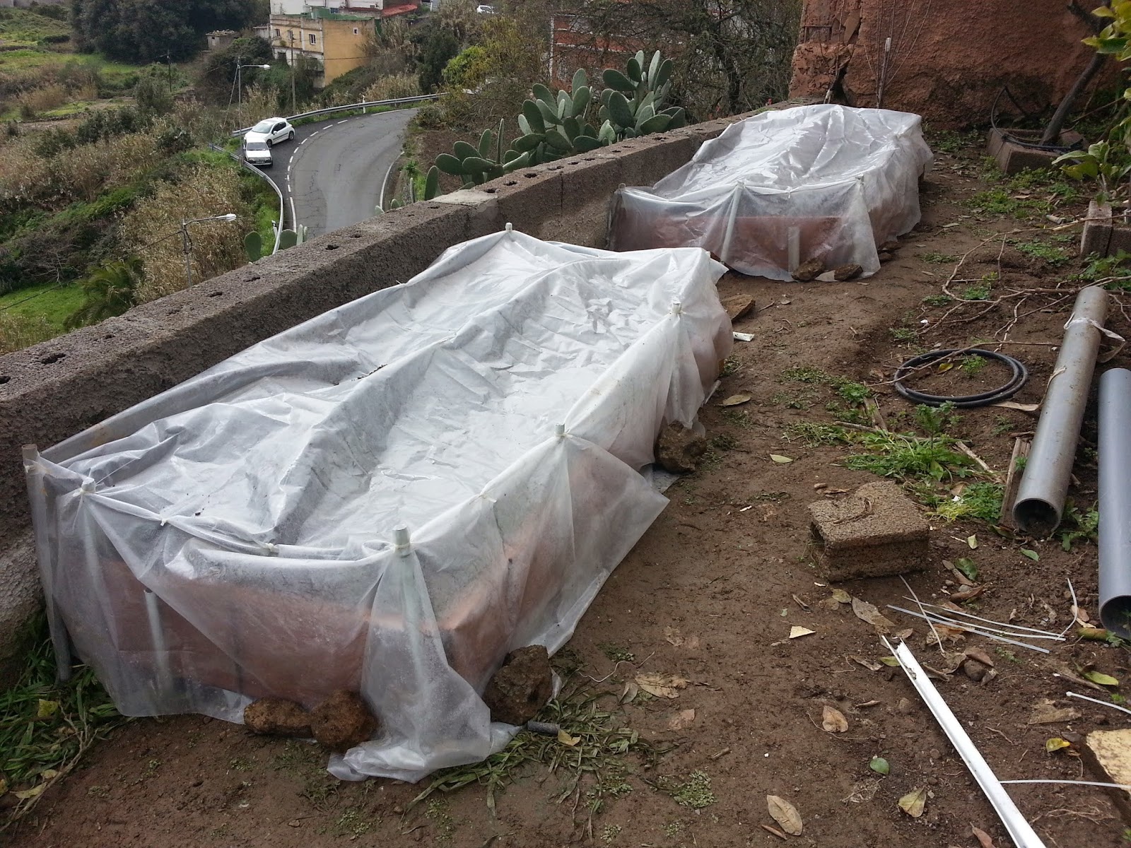 los bancales tapados con plastico asi estuvieron hasta el 4 o 5 de abril de 2014
