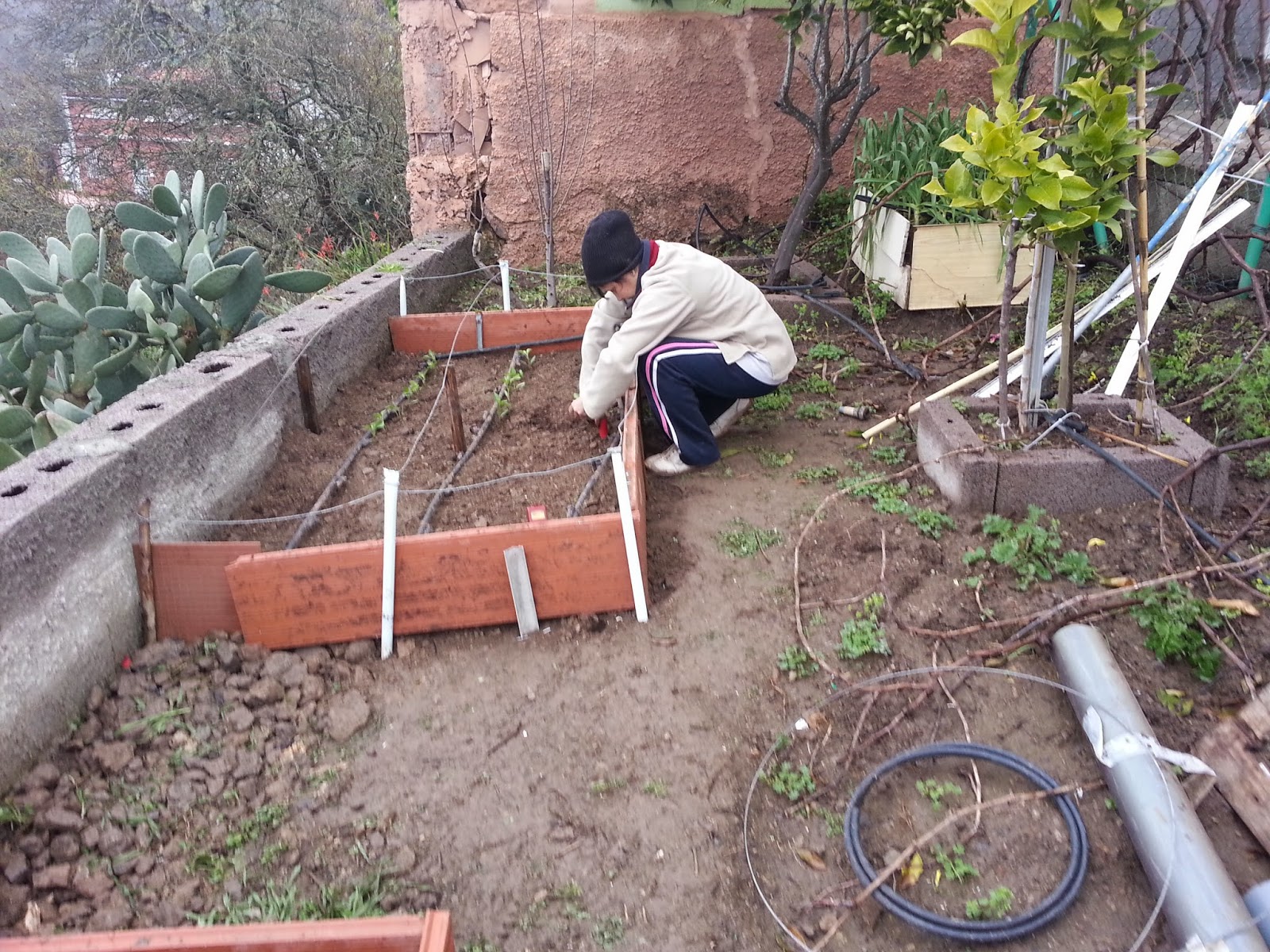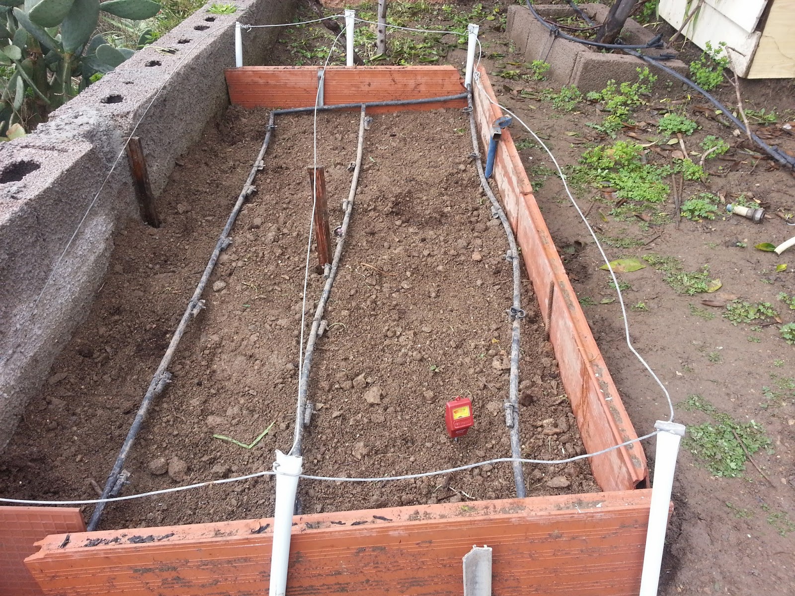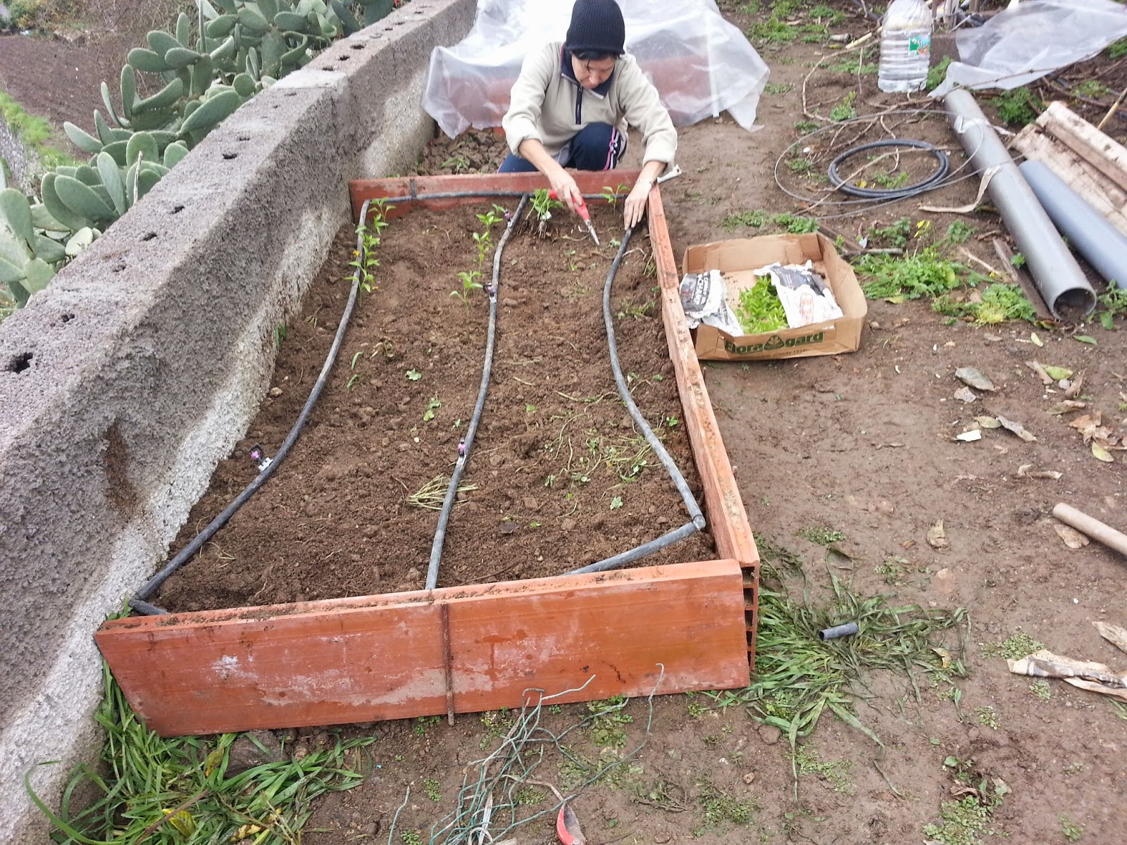 Bancal 1 donde plantamos los pimientos con el medidor de ph