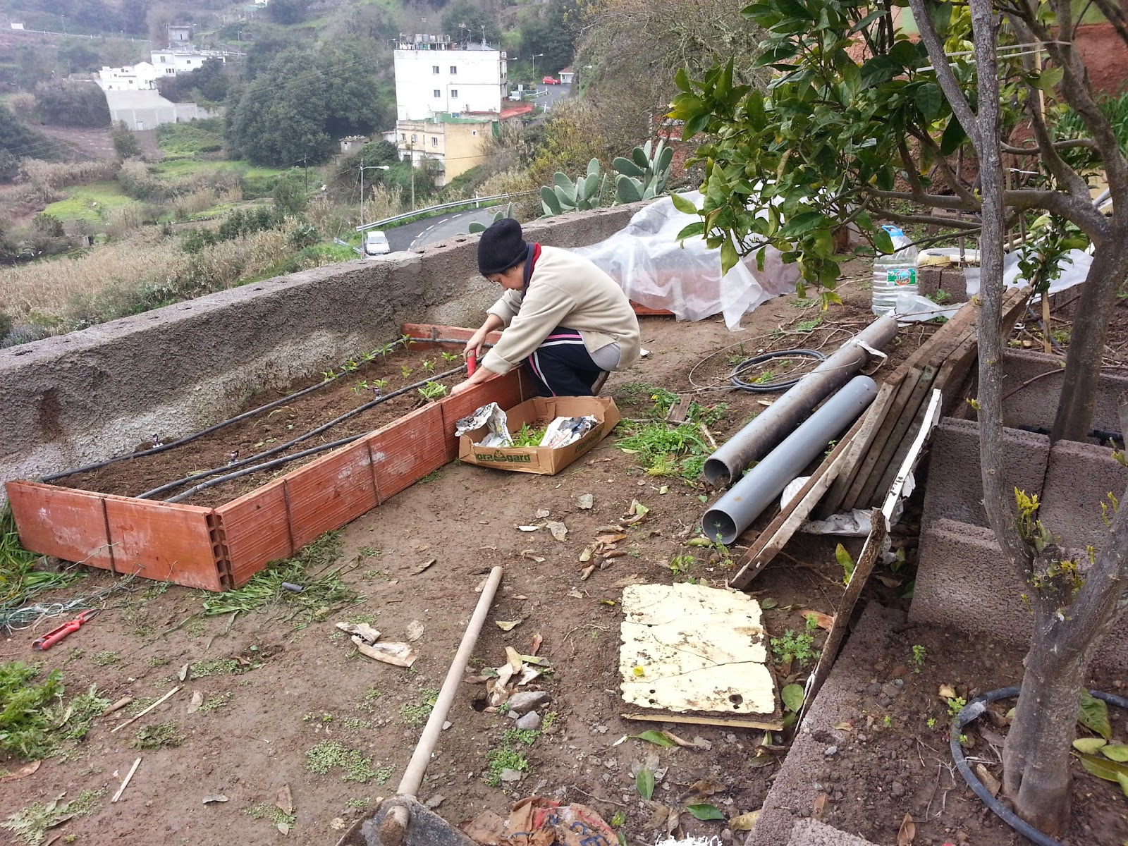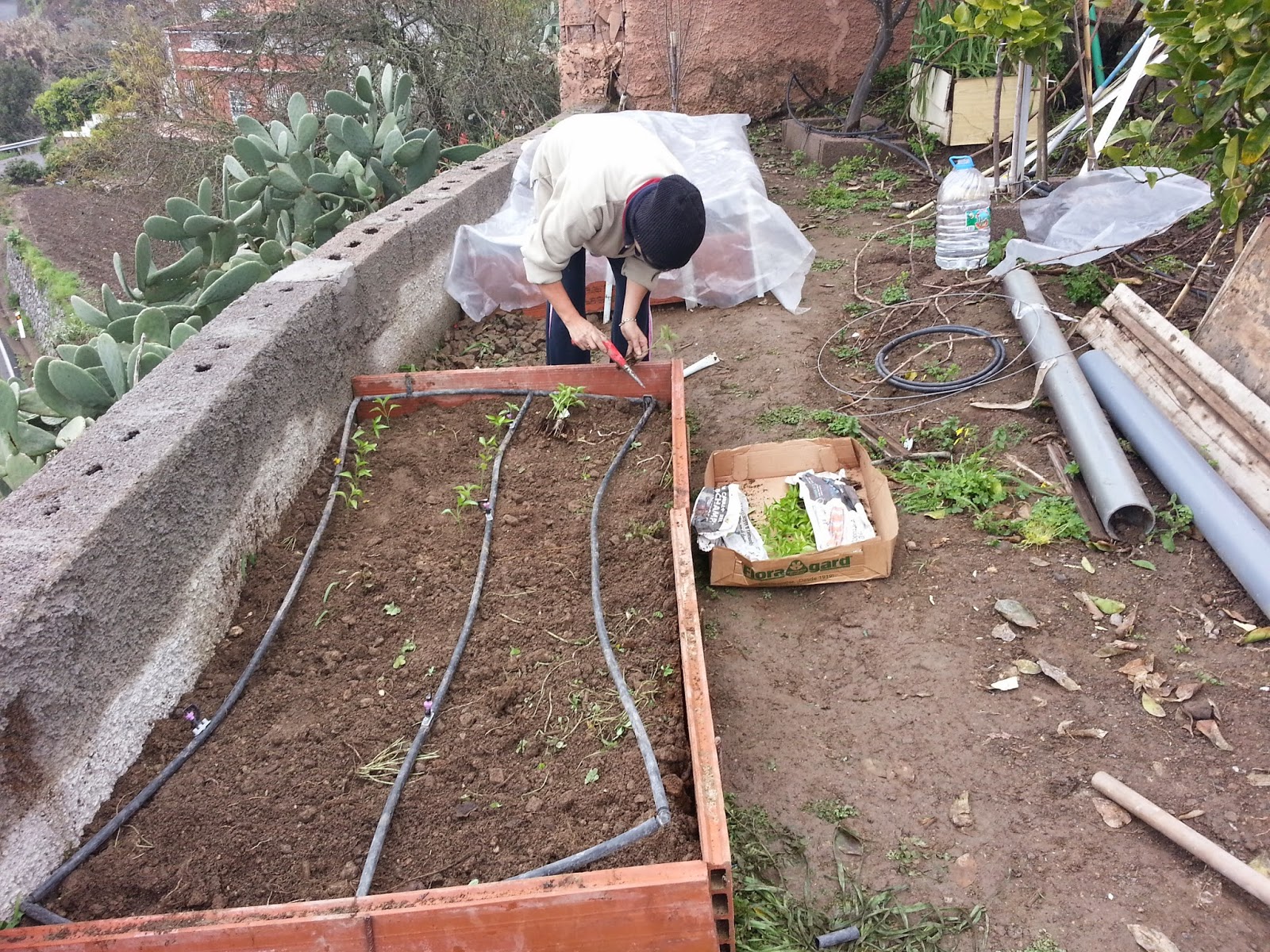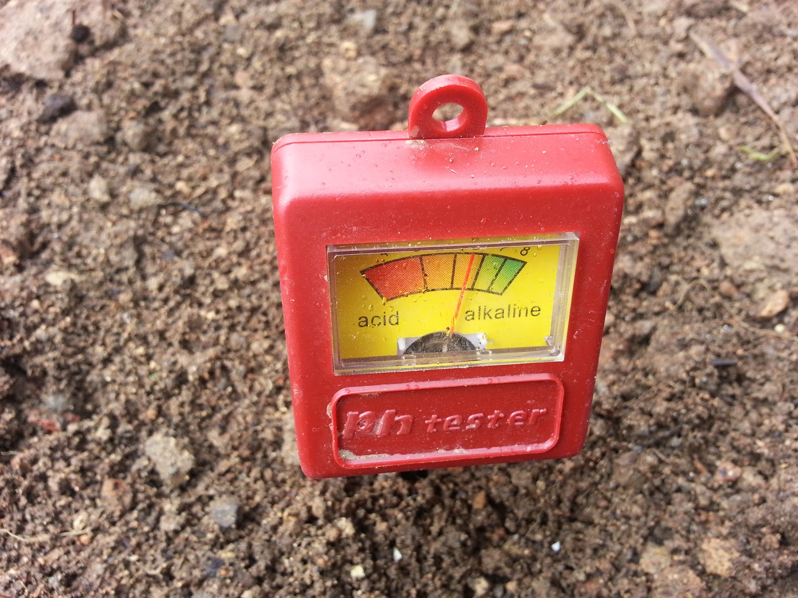 Bancal 1 donde plantamos los pimientos con el medidor de ph