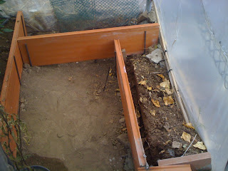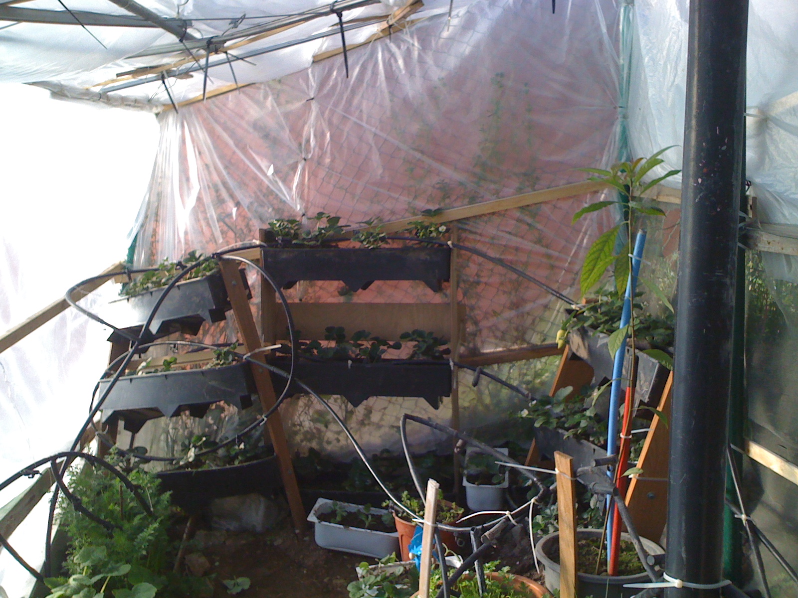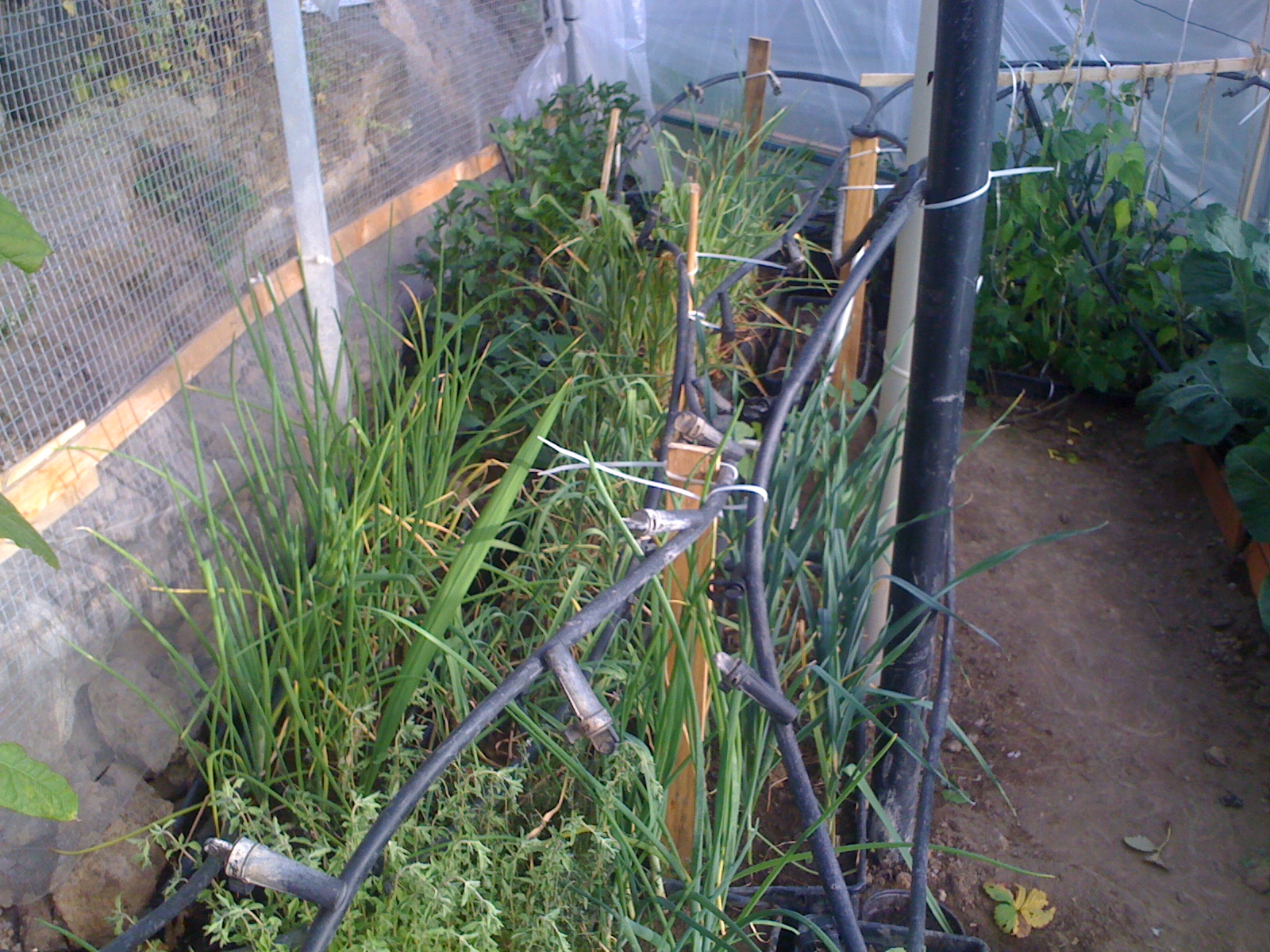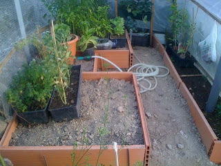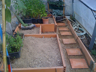 tambien en el invernadero 2 hemos hecho dos nuevos bancales y hemos puesto el goteo