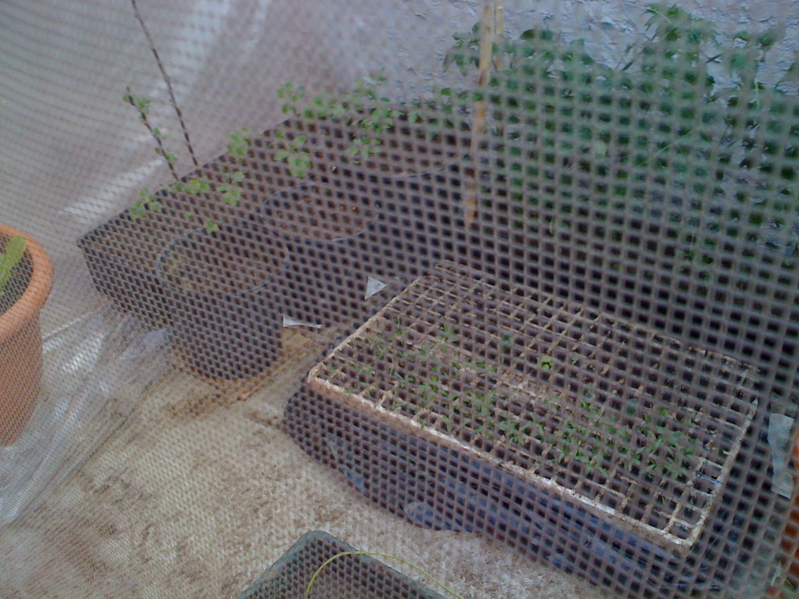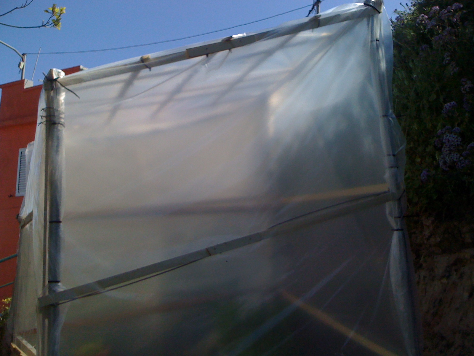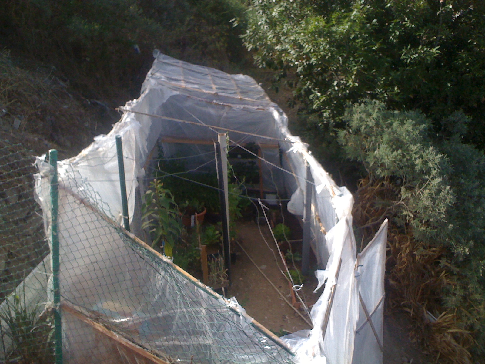 aquí se aprecia la tela metálica por la parte de atrás del invernadero