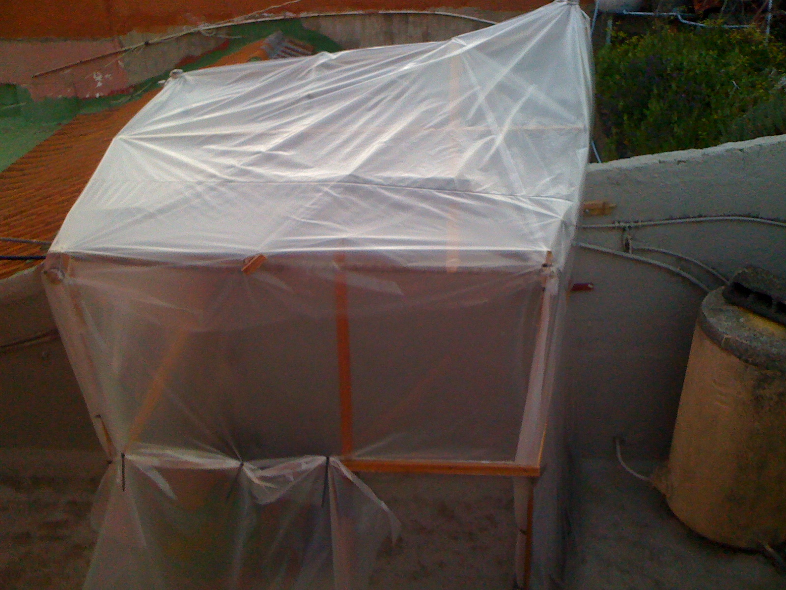 Esto es un ana vista del invernadero de la azotea a travez de la tela