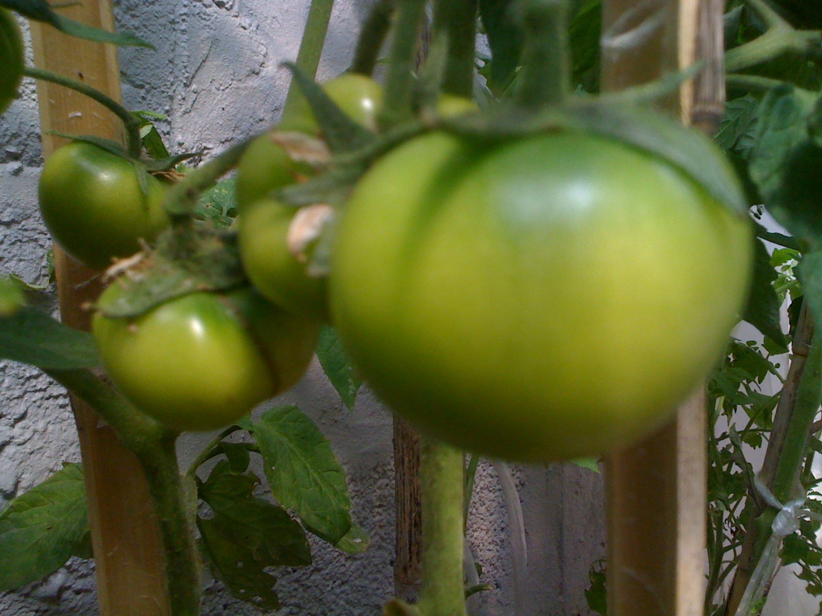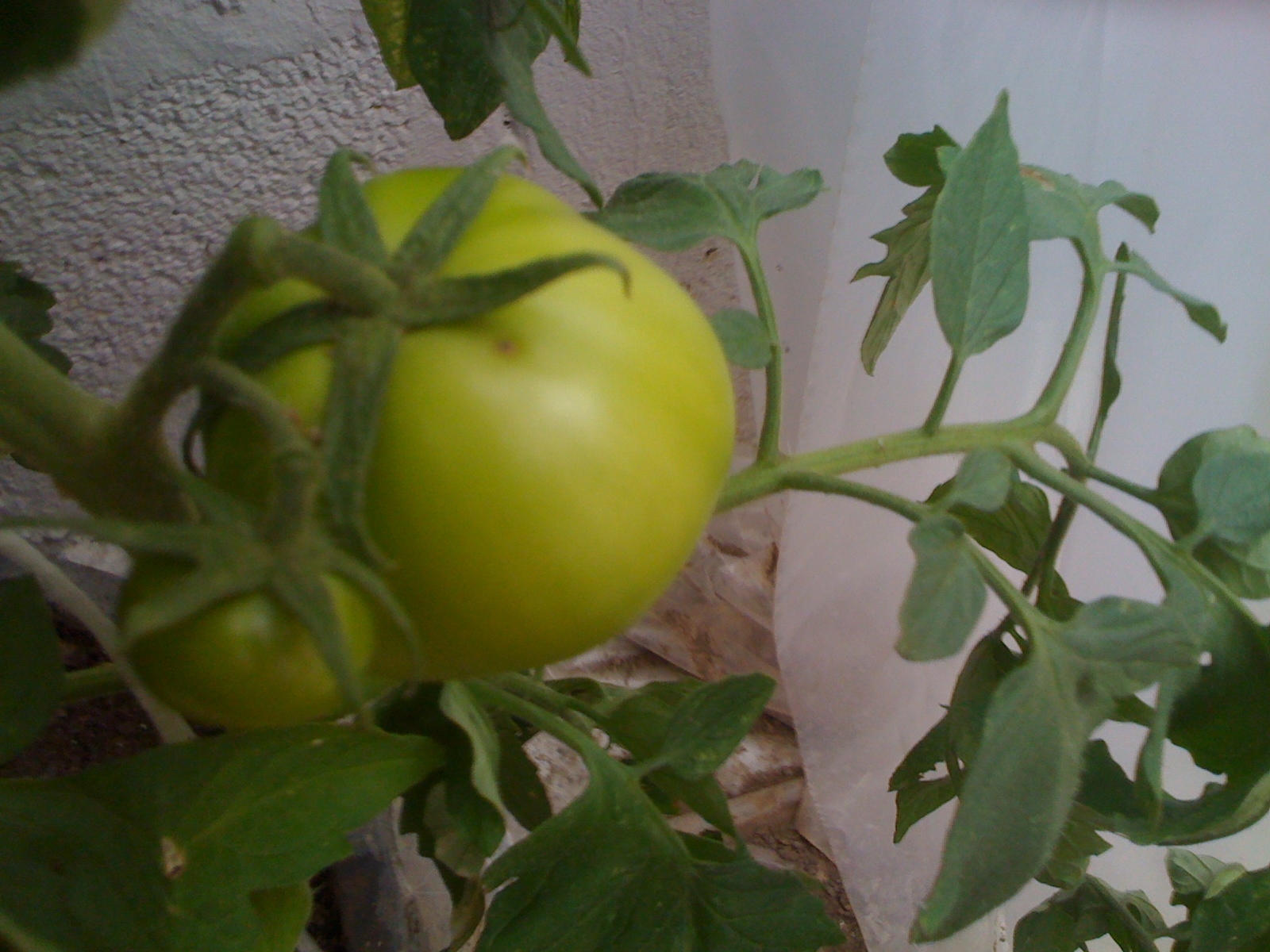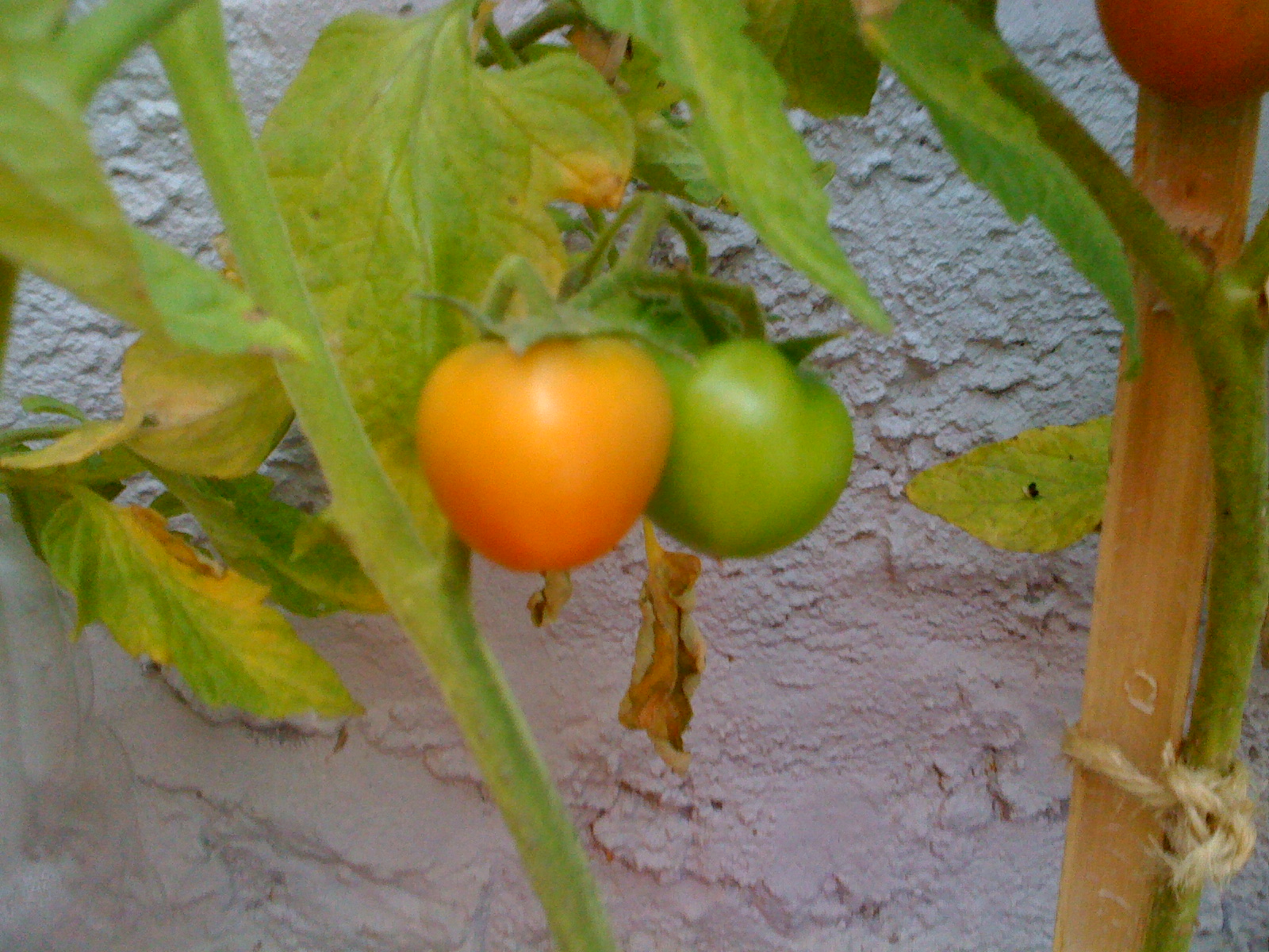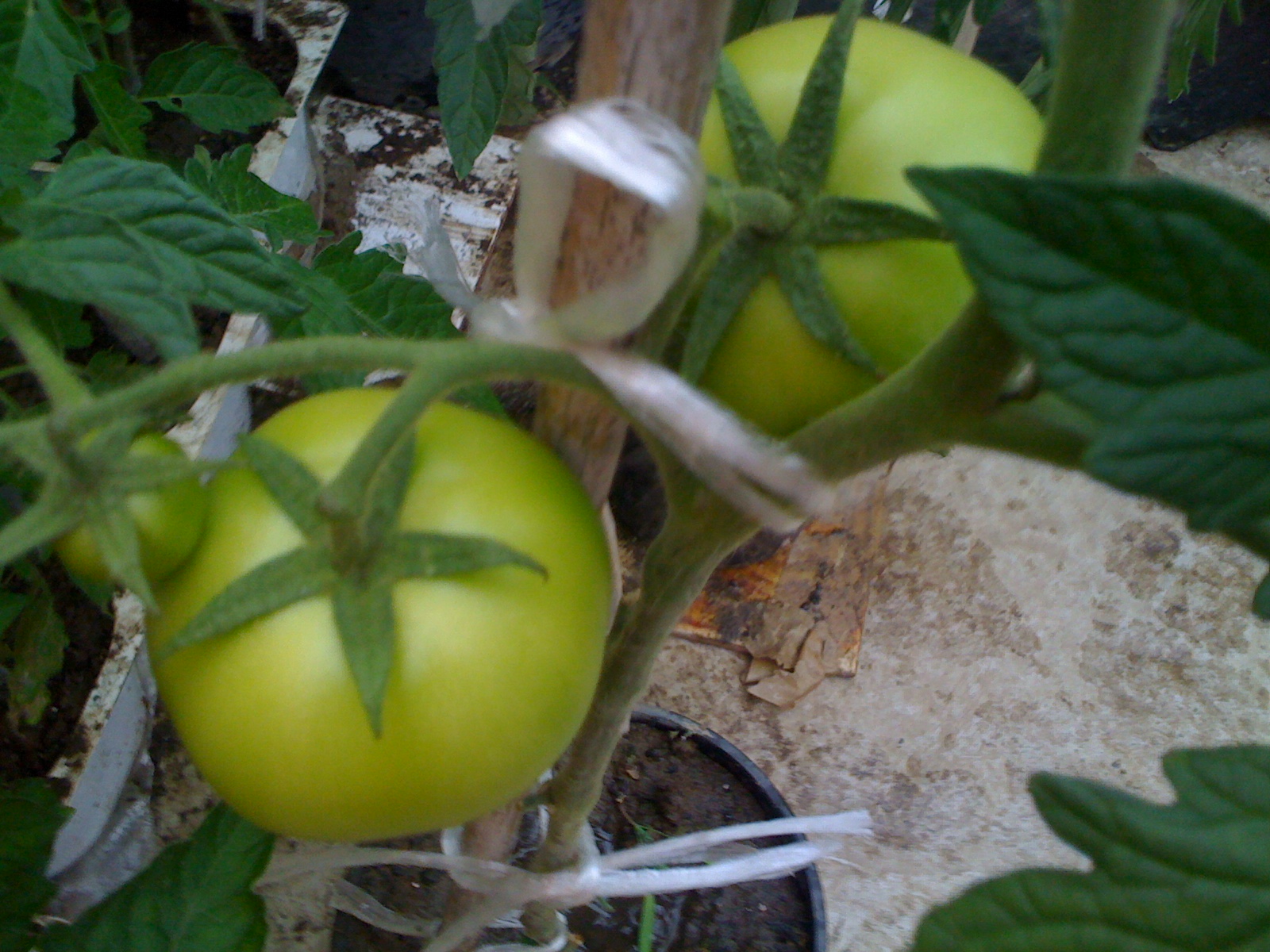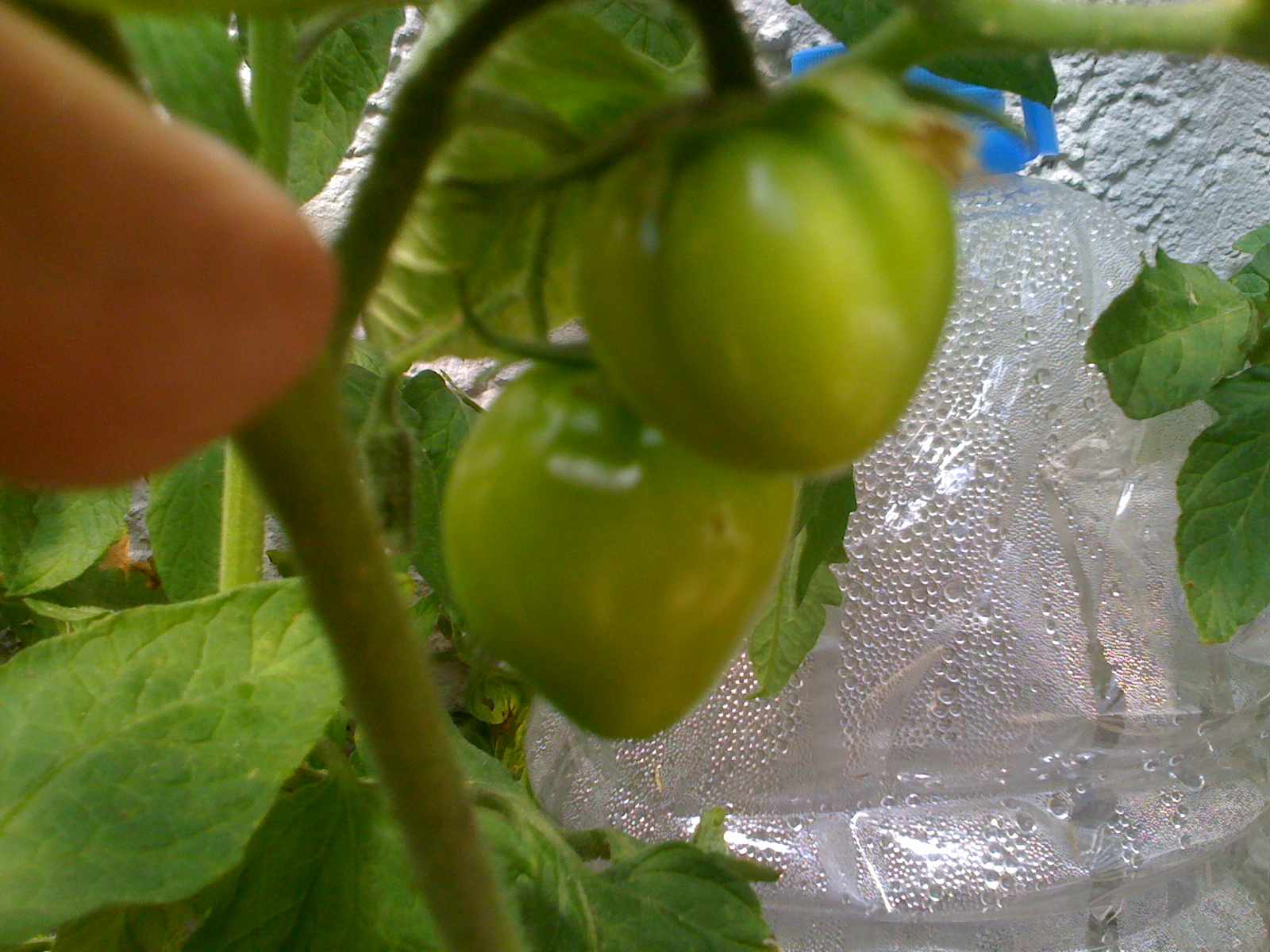 Aqui se ven dos tomatitos y hay un tercero pero que esta escondido por otro lado