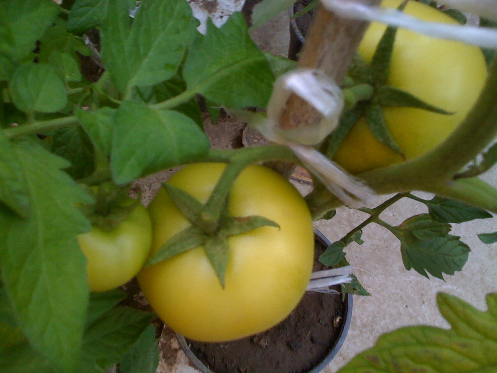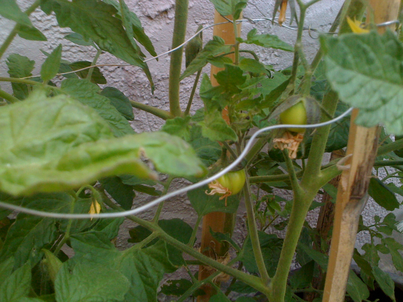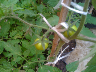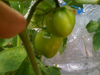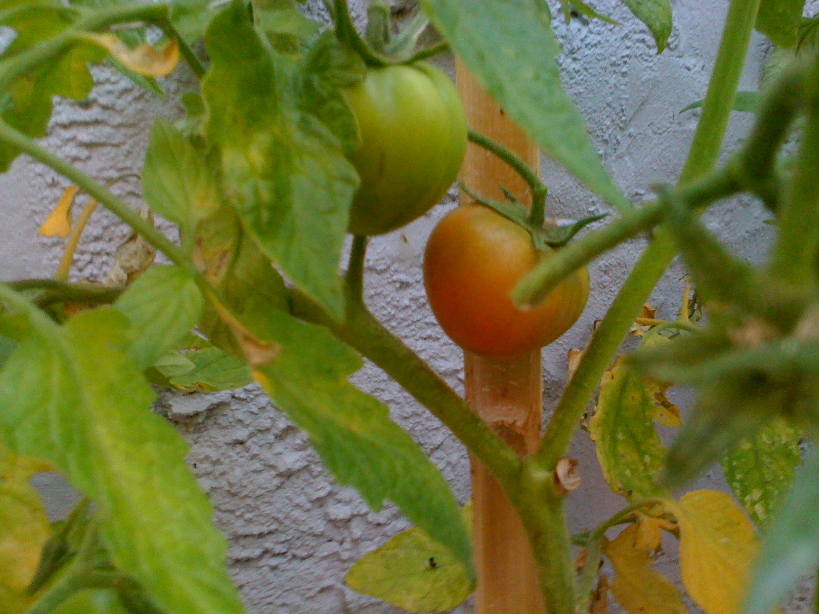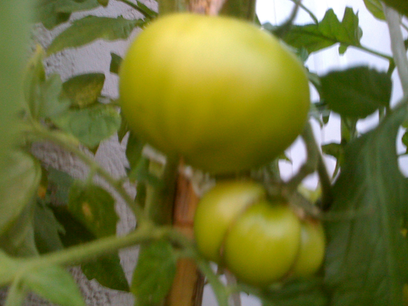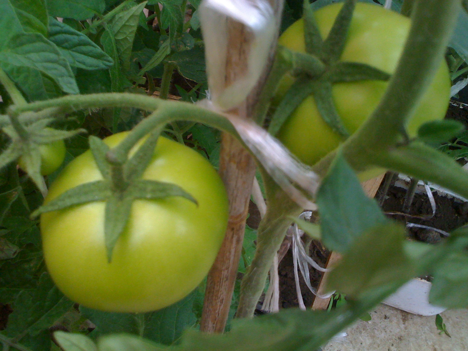 Aqui se ven dos tomatitos y hay un tercero pero que esta escondido por otro lado