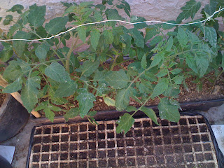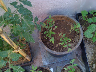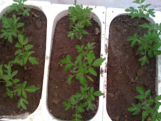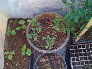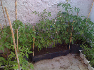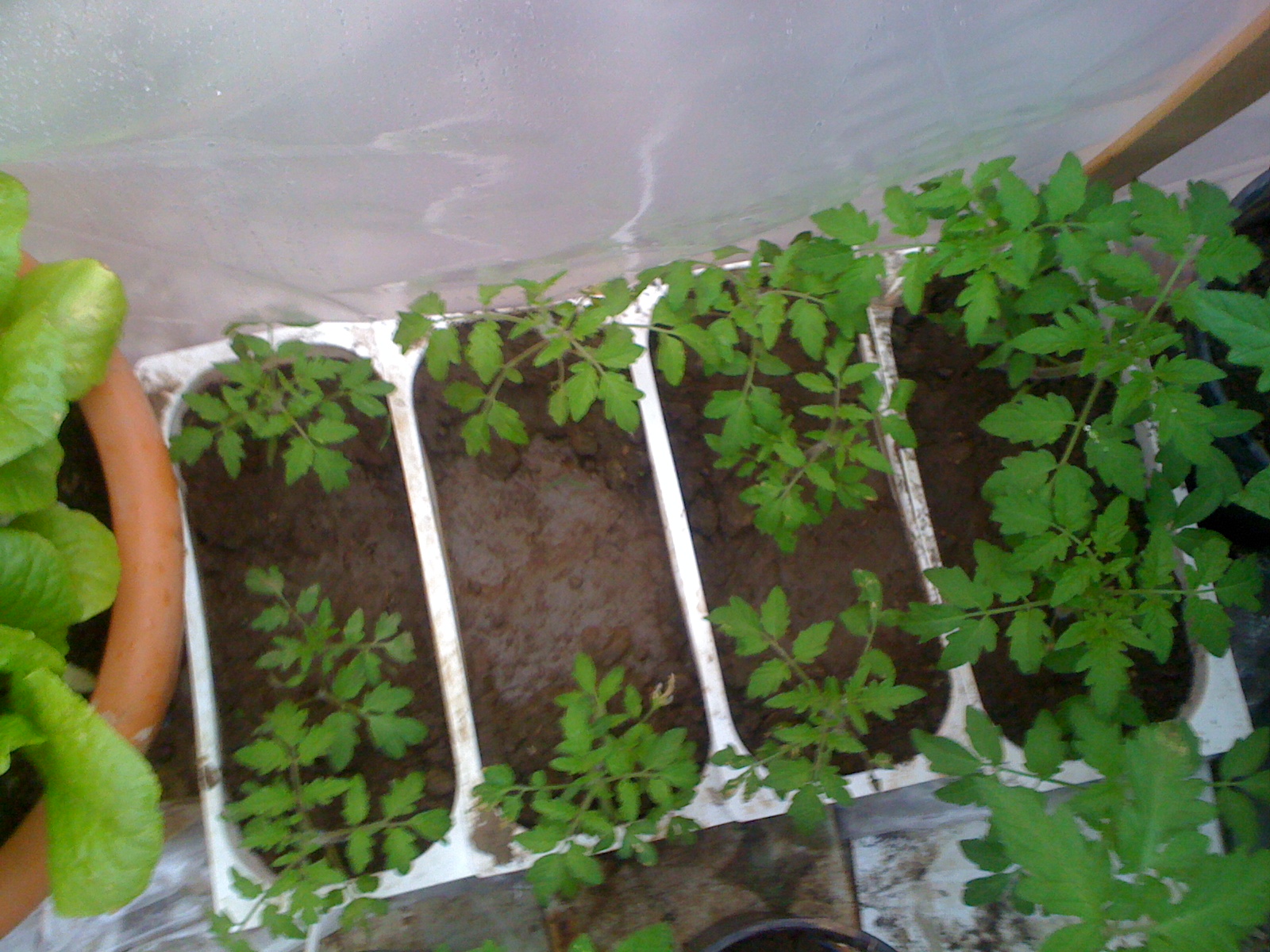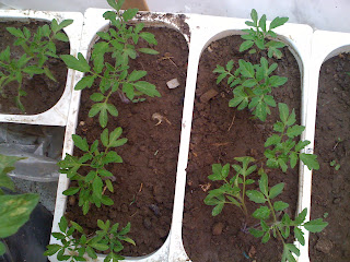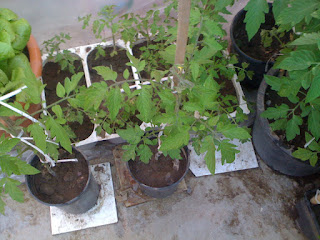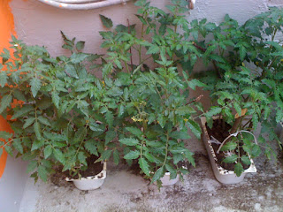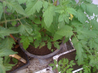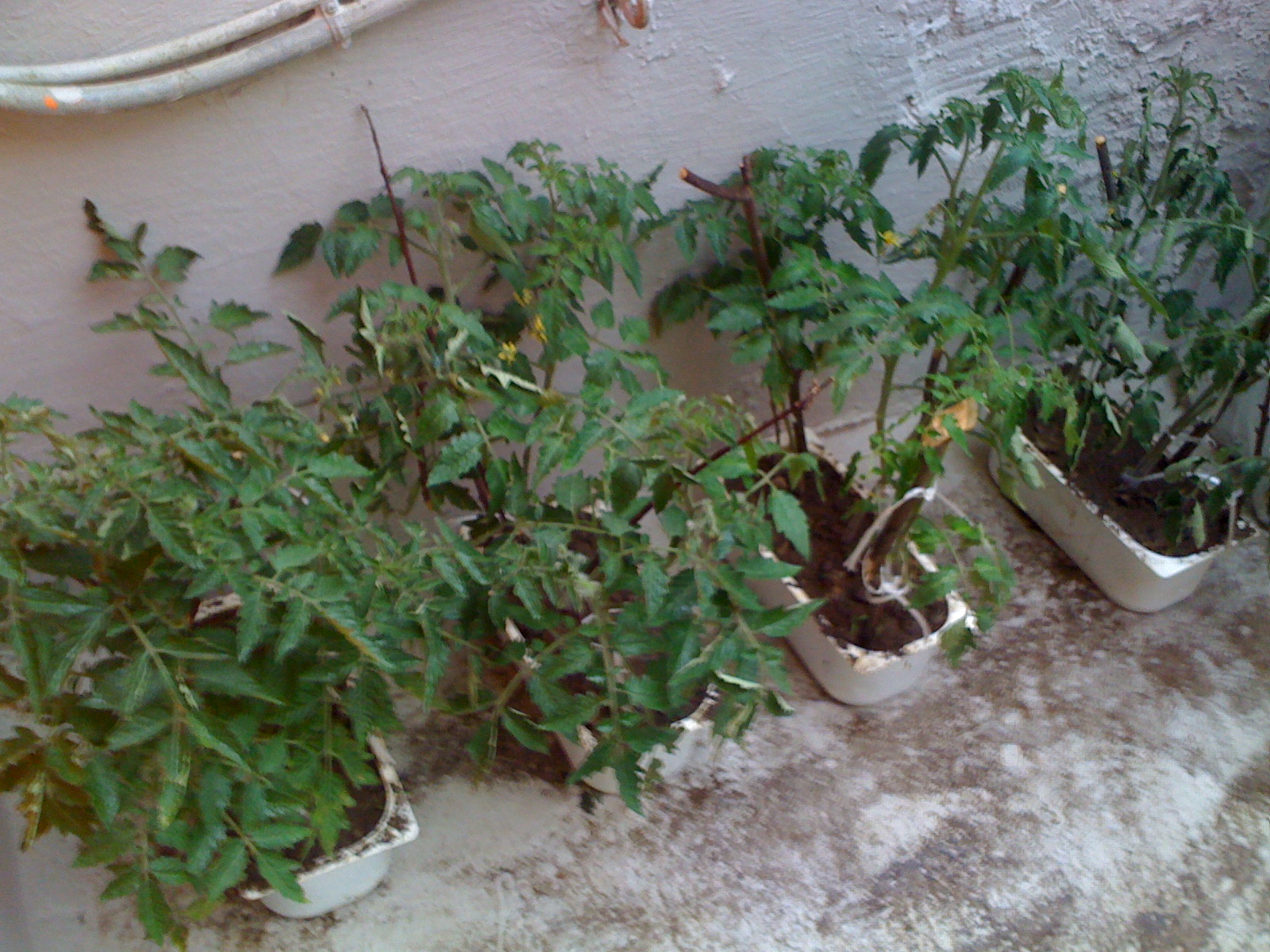estan son las tomateras que plantamos del semillero hay 4 en cada maceta